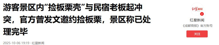 信源来自:游客景区内“捡板栗壳”与民宿老板起冲突,官方曾发文邀约捡板栗,景区称已处理完毕